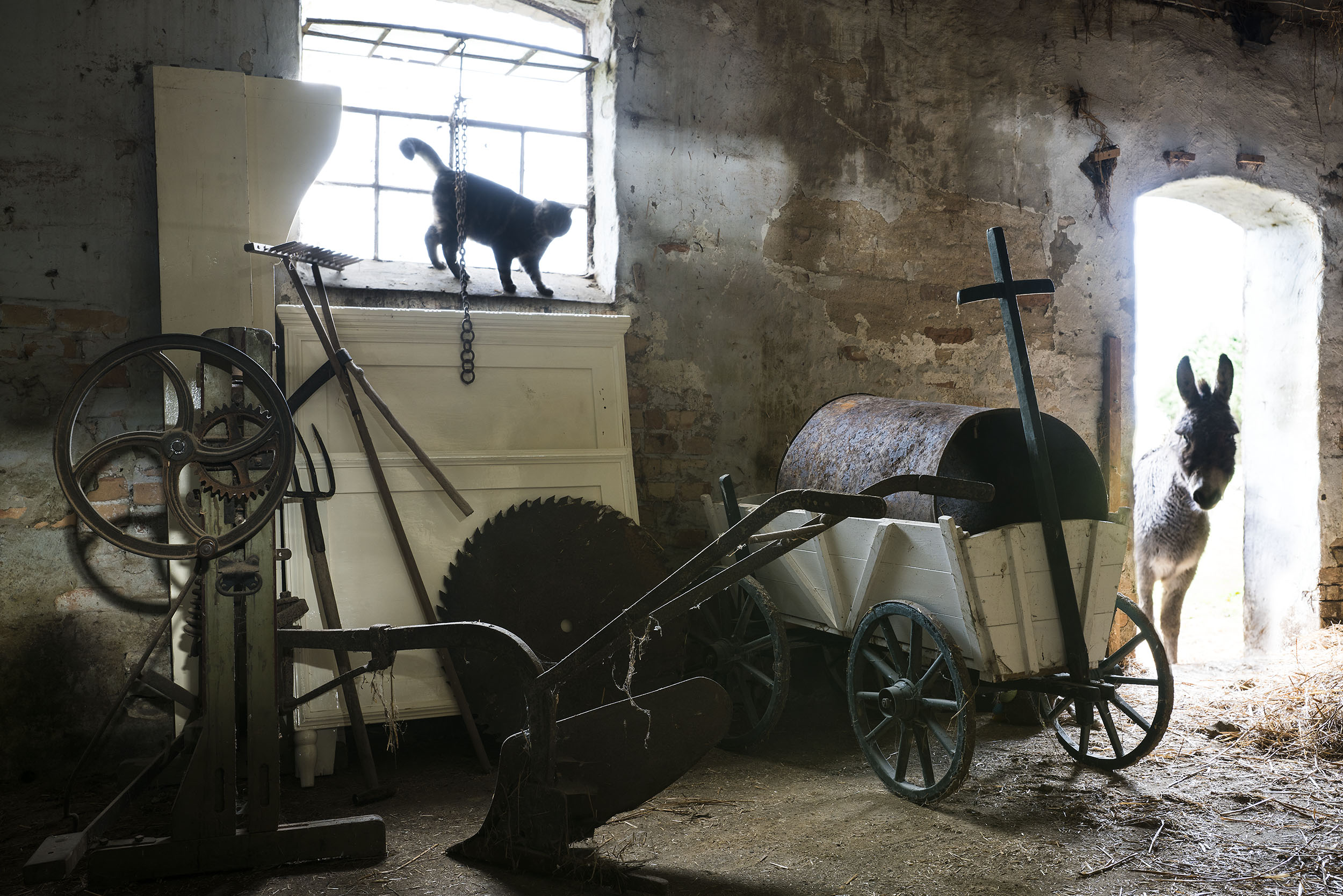 Hier gibt es viele Sachen zu entdecken. Ich bin hier aufgewachsen und kann mich nicht mehr an die ganzen alten Möbel der Vorbesitzer erinnern, aber ich finde immer wieder neue Dinge. Mama und Papa sagen, dass sie ganz viele Möbel und das gesamte Inventar der Vorbesitzer weggebracht haben, weil sie es scheußlich fanden. Ein paar echte alte Dinge sind aber übrig geblieben. Zum Beispiel haben wir eine alte Mühle, mit der früher das Korn gemahlen wurde, einen ganz großen Blasebalg auf dem Stalldachboden und im unteren Teil so einen Tisch auf dem geschmiedet wurde. Und dann gibt es da noch dieses Bett. Ich wusste bis vor Kurzem nicht, dass es ein Bett ist, bis Mama und Papa mir die zwei langen und zwei breiten Bretter, die an der Wand in der Scheune stehen, erklärt haben. Ich bin jetzt schon groß und Papa hat mir ein größeres Bett versprochen und mir gesagt...